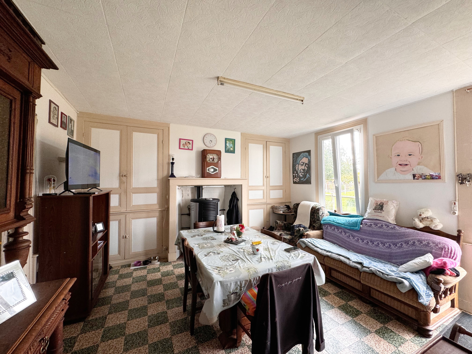 Travaux récents : fenêtres doubles vitrages PVC, poêles à granules et isolation des combles.