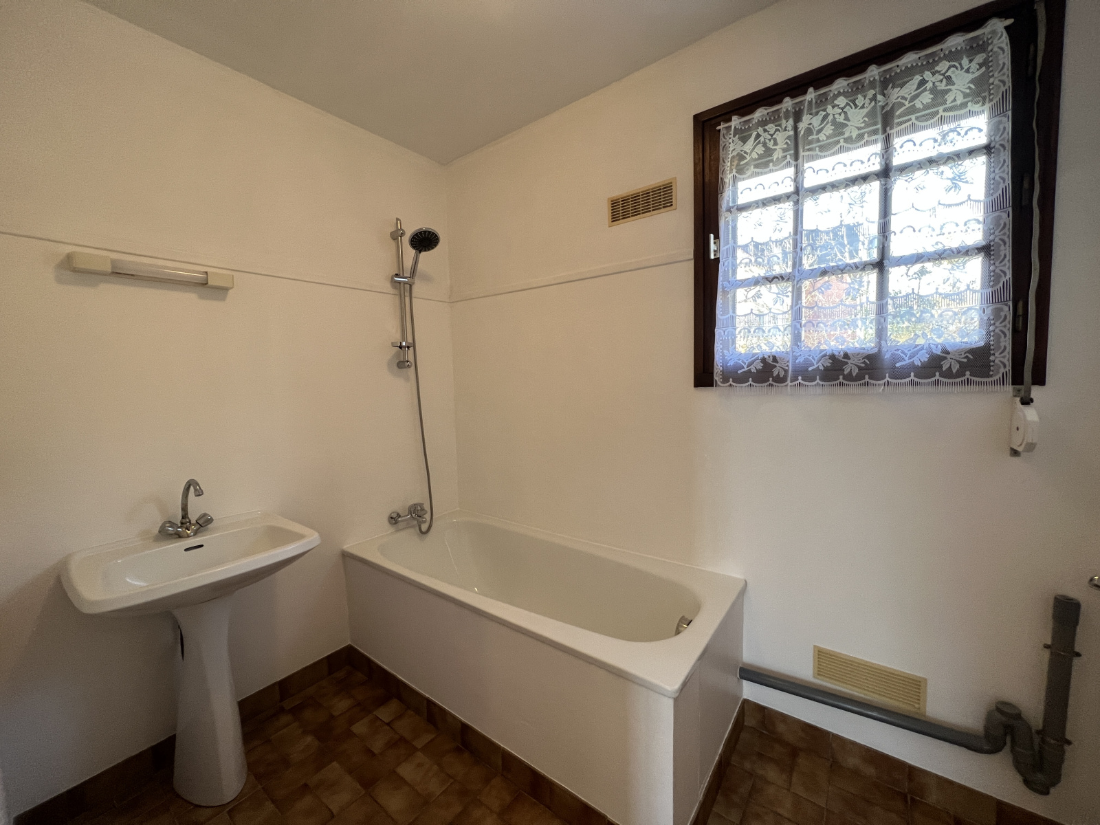 Vous retrouverez au rez-de-chaussée, un salon-séjour, une cuisine séparée, une salle de bains, deux chambres et un WC séparé.