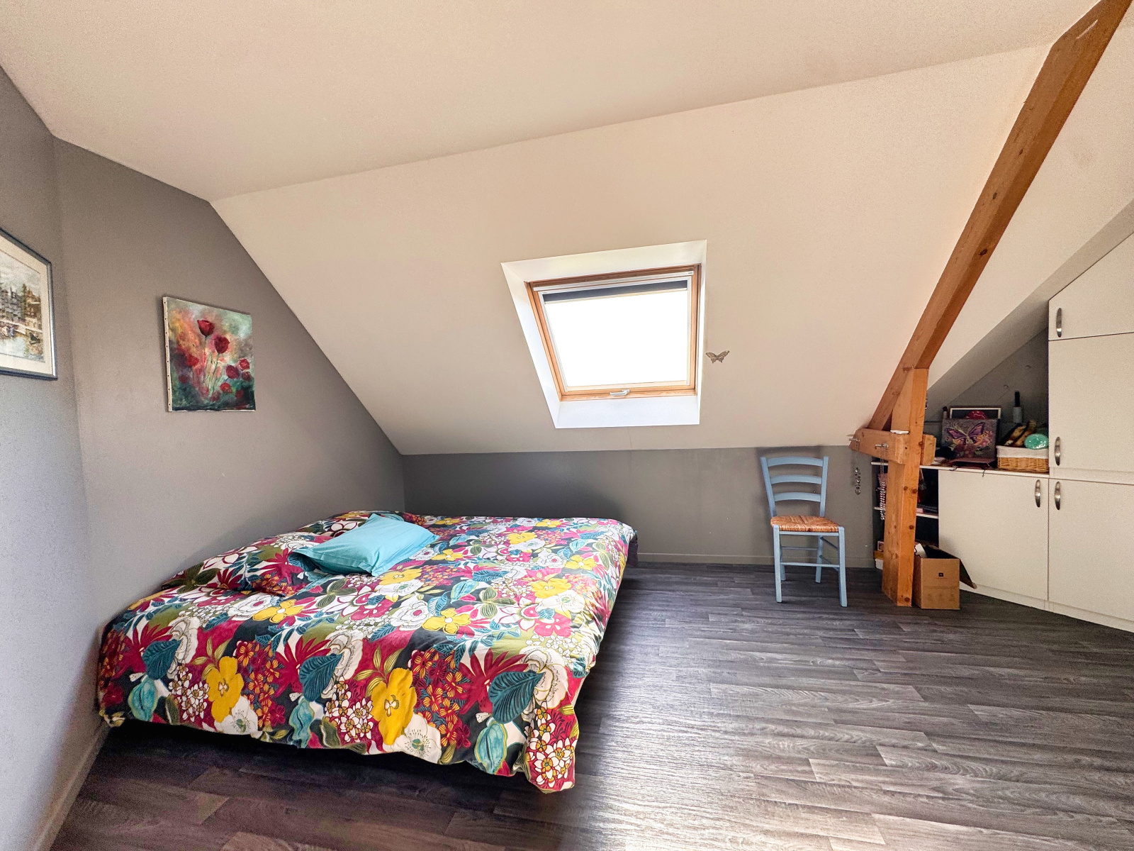 - Au premier étage un grand palier desservant quatre chambres, une salle d'eau et un wc.