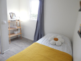 Elle se compose d'une pièce de vie très lumineuse d 'environ 21 M2, d'une autre pièce donnant sur la cuisine ouverte, d'une salle d'eau, de deux chambres dont une avec dressing et d'un bureau.